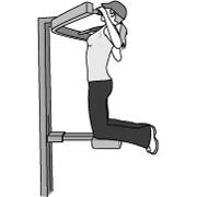 Description START POSITION: Grip bar about 6 inches wider than shoulder width. Retract shoulder blades. MOVEMENT: Leaning back slightly, slowly pull body up toward bar until base of neck is near bar. Keep bar in front of body at all times and do not bring to back of head. Slowly return to starting position, keeping shoulder blades retracted. |